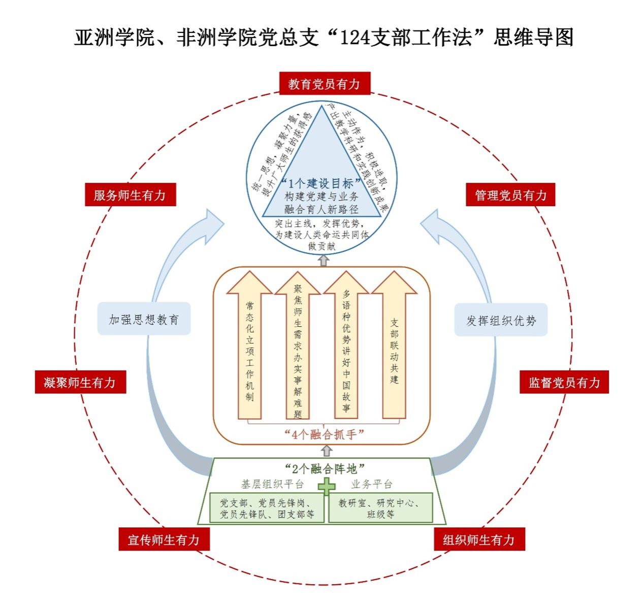 “124支部工作法”是亚洲学院、非洲学院各党支部开展工作的方法论,是党总支和党支部多年实践的经验,是学习和调研得来的成果,是广大党员师生共同努力的结晶,各支部要学好、用好、贯彻好,每年至少完成12项举措。