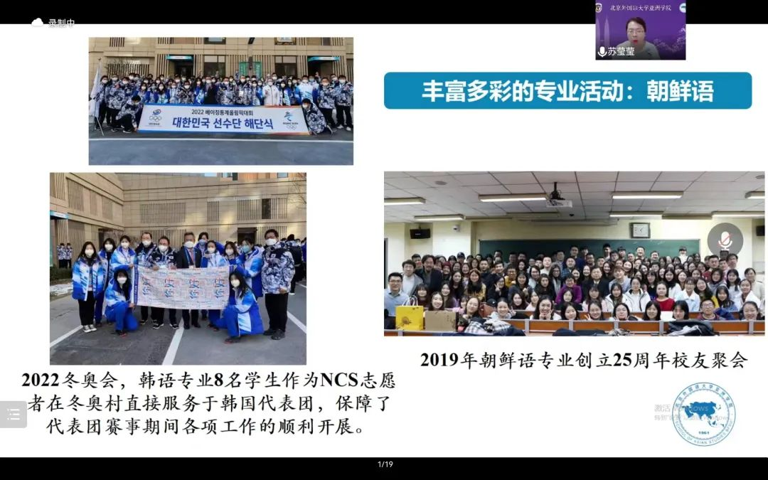 首先,苏院长从2021年的北外80周年校庆以及亚洲学院60周年院庆出发,向同学们介绍了亚洲学院的建院历史及发展历程,通过一段段历史资料和一个个发展成果,让同学们对亚洲学院有了初步了解。同时,苏院长特别提到了亚洲学院的强大师资力量、国际化人才培养的重要举措以及丰富多彩的专业活动,让同学们对未来的学习有了更加全面的认识以及全新的期待。关于毕业生的就业情况,苏院长从近几年的就业数据和近几年毕业生经历出发,通过坚实的数据成果和真实的毕业生案例,给予同学们更多的自信心和信念感,让同学们更有信心,去通过北外的四年学习生活达成自己人生的理想和目标。